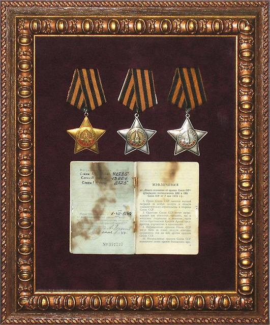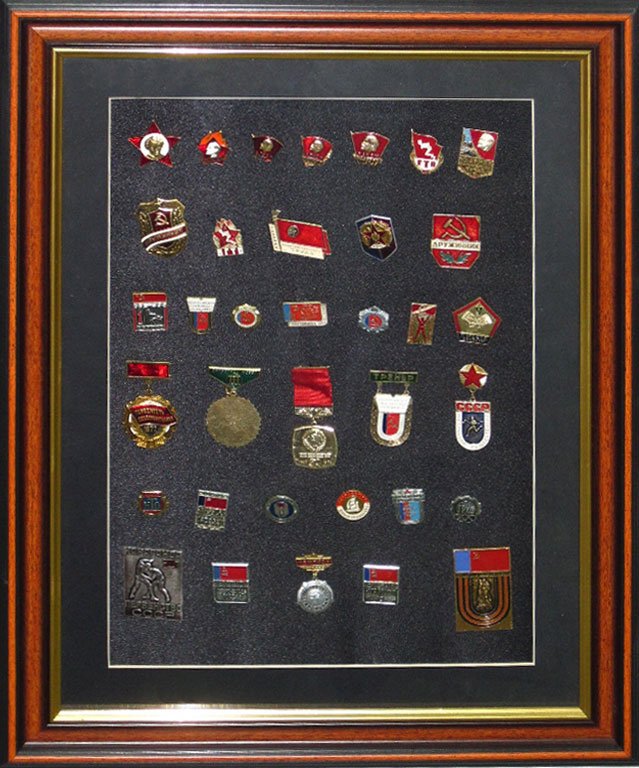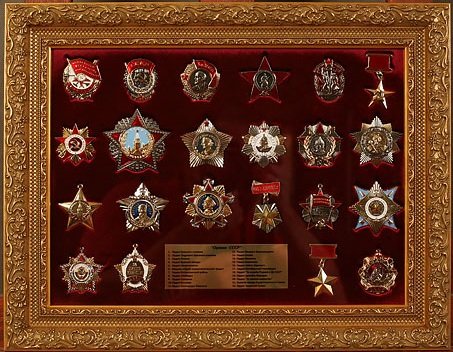 Награды надёжно фиксируются внутри конструкции, защищены от пыли и влаги. Оформление выполняется вручную, с тщательной проработкой деталей и соблюдением музейных стандартов.