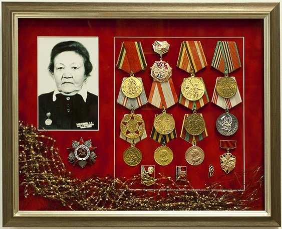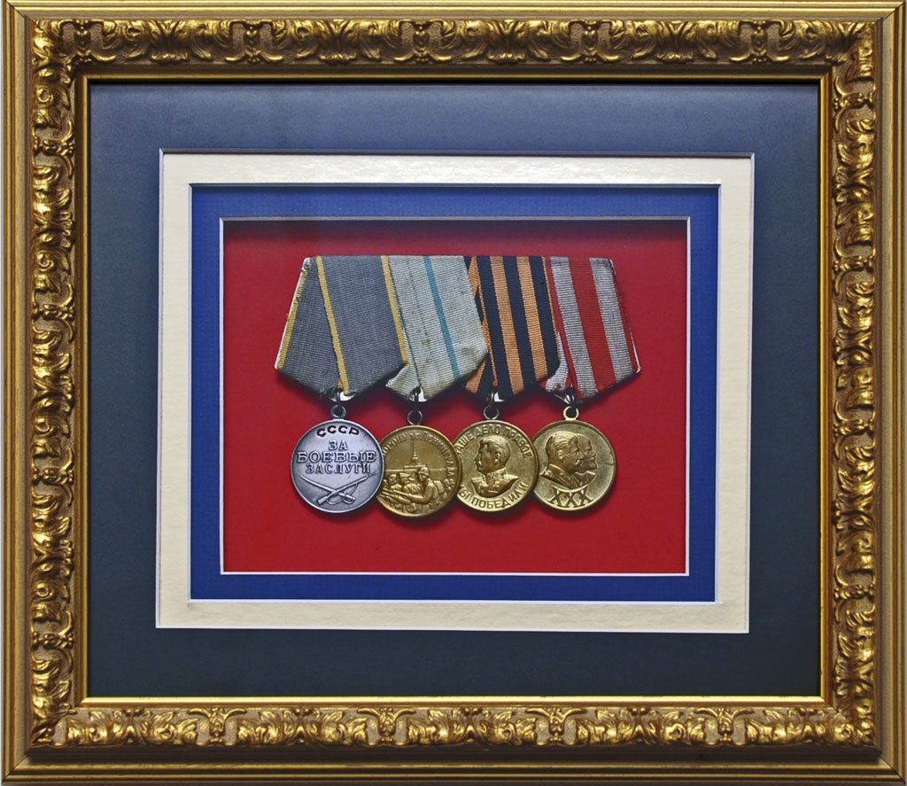 Мы предлагаем профессиональное объёмное оформление наград — от индивидуальных медалей до комплексных композиций с орденами, значками, фотографиями, подписями и элементами декора.